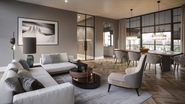 Interior fittings of the Dusseldorf apartments in Dusseldorf Oberkassel
